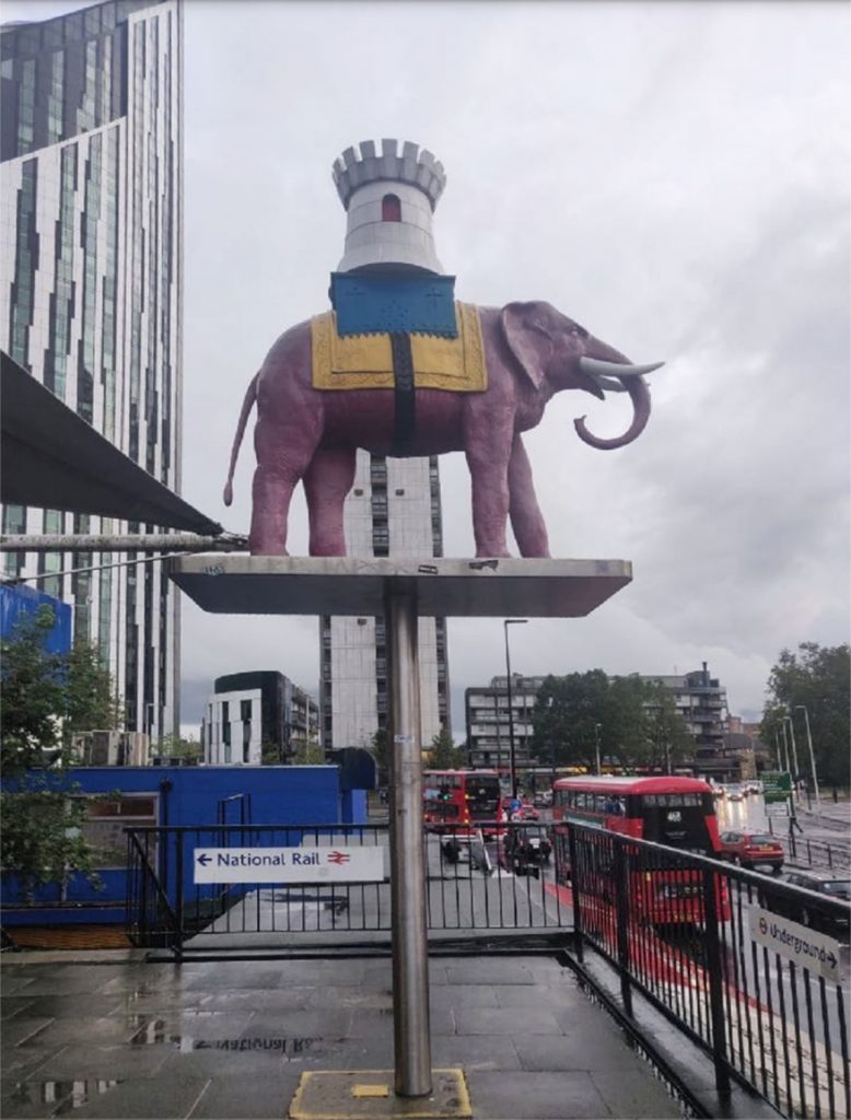 ST: I found a vintage souvenir teacup on eBay in the shape of the Elephant and Castle statue that was sitting in front of the mall. There are various stories about the origins of the name Elephant and Castle and this symbol. Royal African Company, an English company set up in 1660, the biggest company in the Atlantic slave trade, had an elephant carrying a castle on its back in its logo. The same elephant and castle crest also honoured the Worshipful Company of Cutlers, a company founded to produce fighting weapons using ivory, which then shifted its focus to cutleries. Although a very colonial icon, it was the mascot of the mall and people generally found it cute.
