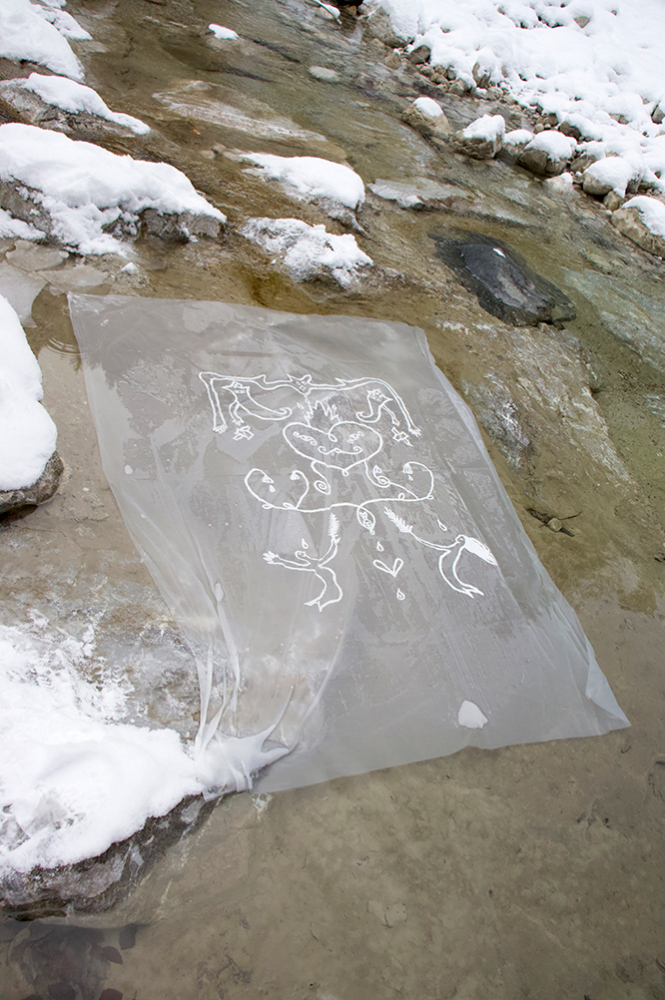 Featuring work by Isabel Cavenecia, Katherine Borchsenius, Christian Roncea, Mette Therbild, and Christian Thomsen (Fjorsk) against the backdrop of a snowcapped Bavarian castle, the show’s fantasy atmosphere is created by icy surrounds. An accompanying text by Cavenecia and Thomsen plays with this wintry imagination, telling the story of a “mysterious individual who has been living alone in a castle for as long as she can remember, [who] decides to break free in search of human contact and light.”**