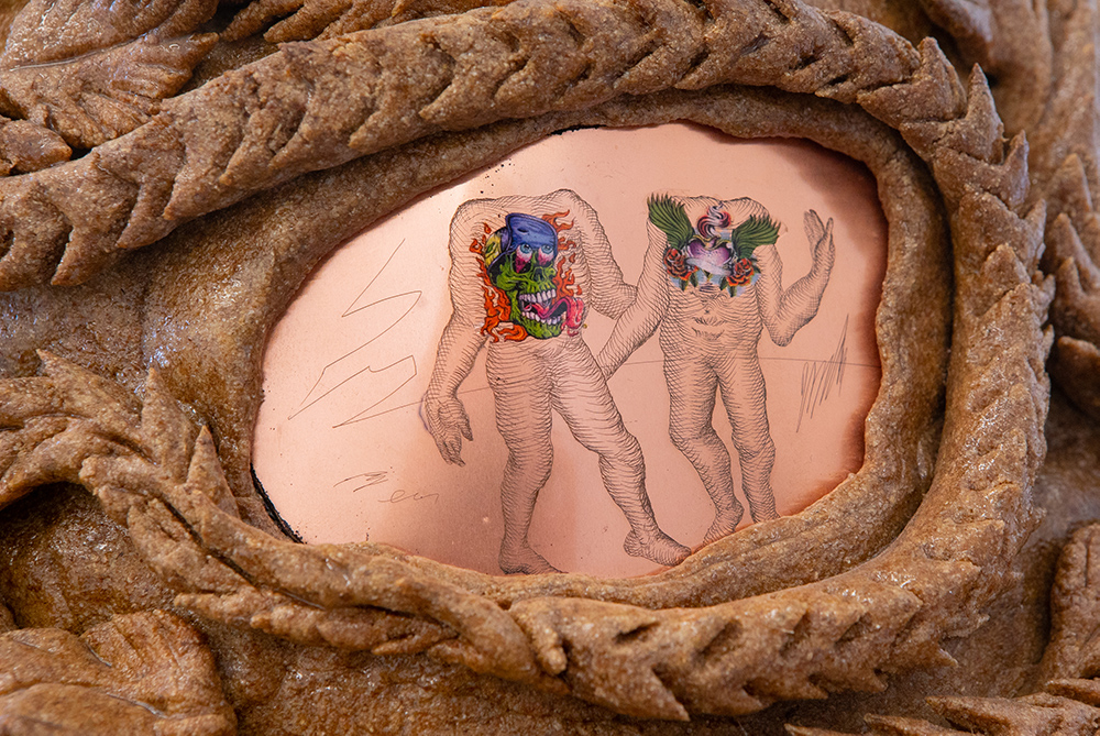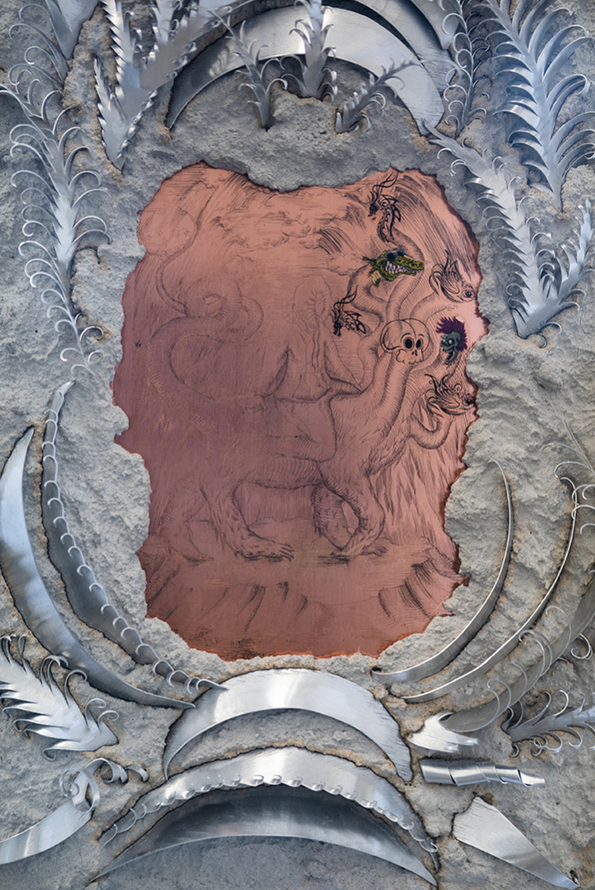 With mixed-media installation, video, sculpture and illustration, the show creates a neo-baroque fantasy space of engaging fictions. As commented in the exhibition text: “These objects are today’s artifacts, freezing the flows of information, reminiscing personal and collective stories, joys, and pains.”**