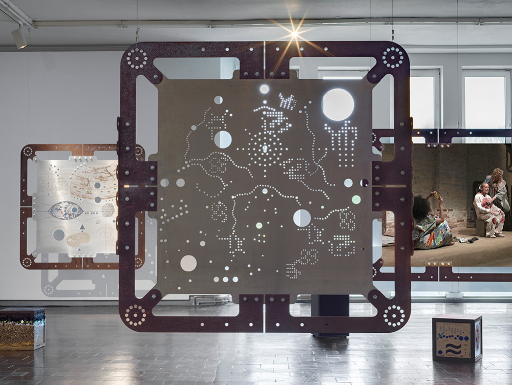 Mariechen Danz, Ore Oral Orientation: modular mapping system in cooperation with Genghis Khan Fabrication Co. (2021). Installation view. Photo by Roman März. Image courtesy the artist + Kunsthalle Recklinghausen.