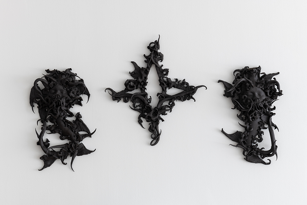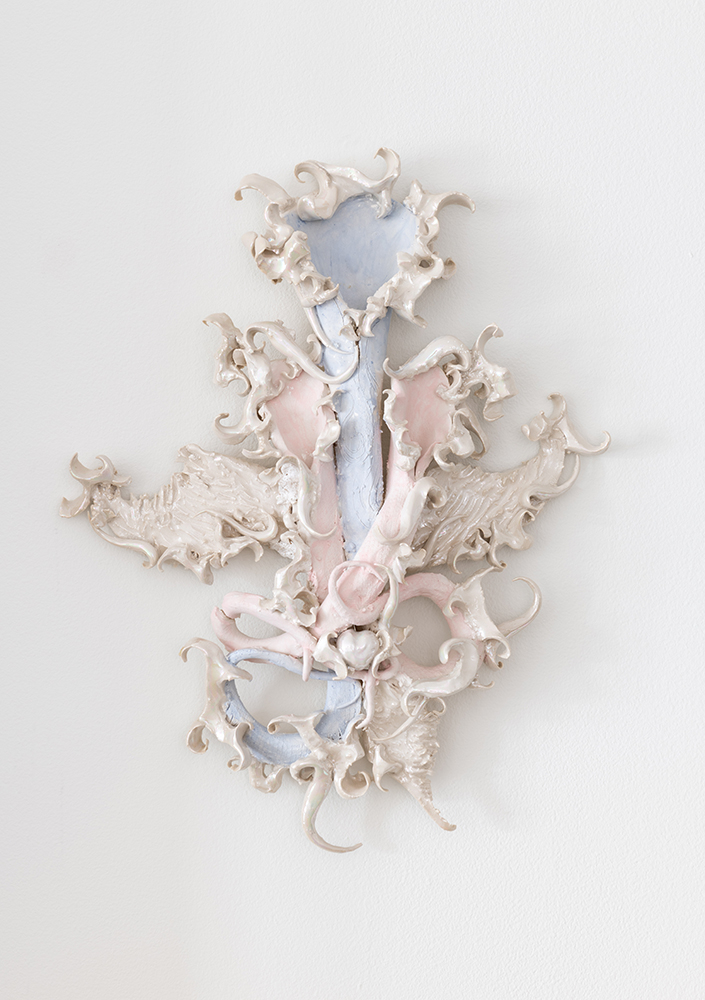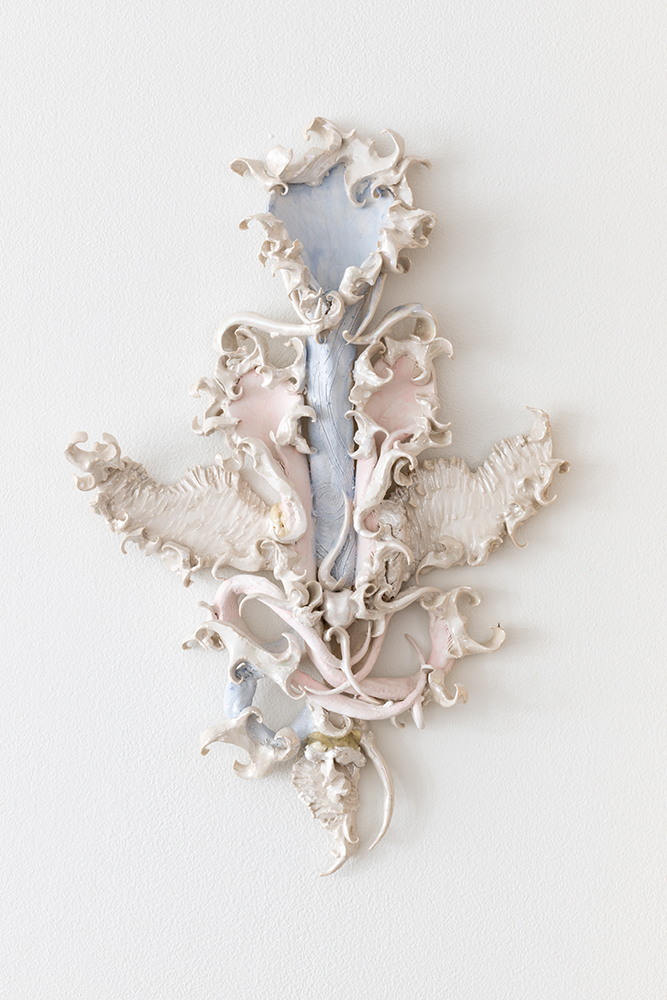 With ceramic sculptures arranged as objects of ritual contemplation, the exhibition evokes themes of transformation, divinity and metamorphosis. As Cyrus Simonoff writes, responding to the show with a text referencing the myth of sirens: “The ocean offered us the possibility of perpetual recreation, so long as we were willing to lay our old vessels to rest.”**