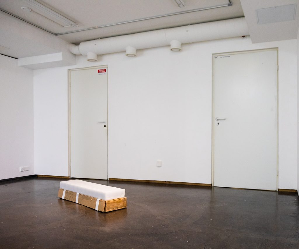 In the darkest pit of winter, there is a heavy-duty, rectangular cardboard box on the floor of the backspace of Titanik, where the final exhibition of Weathering is running. The box contains the LED screen, which now, turned off, is only the dead carcass of the artwork it displayed during the year. It holds the entire potential of the past twelve months and all the views and readings it may have gathered from the street. The end holds the beginning and the beginning holds the end.**