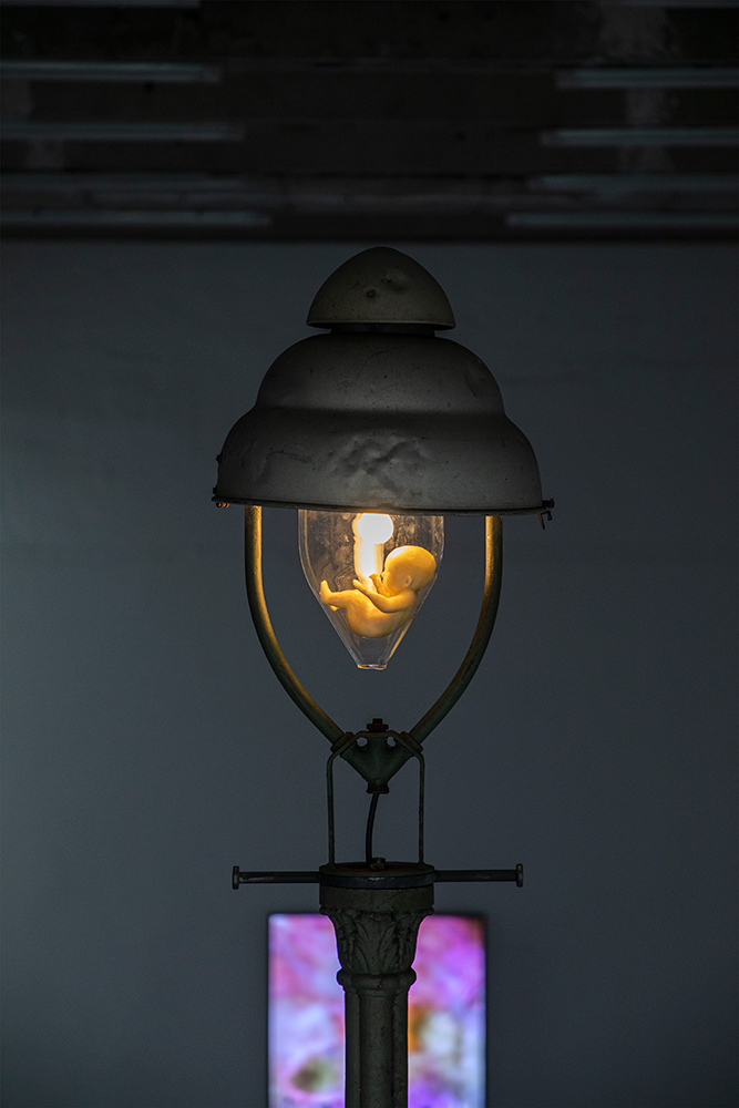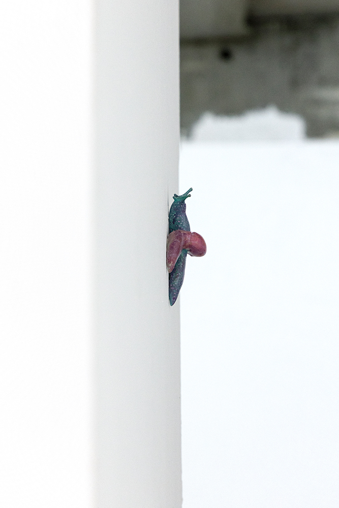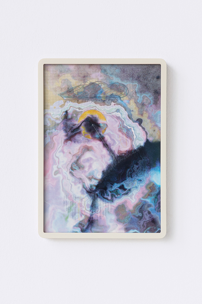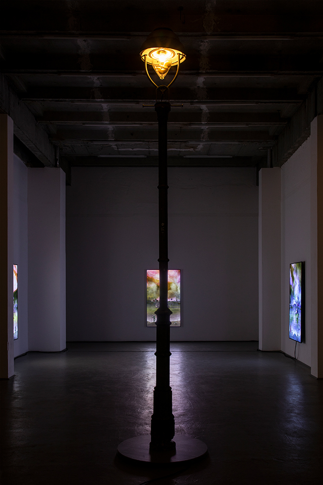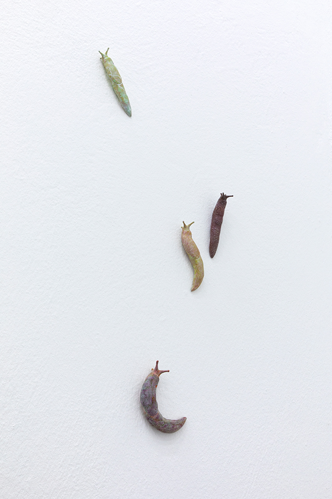 With sculpture, mixed media painting, and animated video, the show evokes embryonic visions and life cycles, with a mix of organic imagery and hyper-coloured dreamscapes. As Adrienne Herr writes in an English and German poem responding to the exhibition: “With Innenwelt we lay energy wie the city träumt die Träume of demoted blaßgraues, the sky and ground exchange purpose.”**
