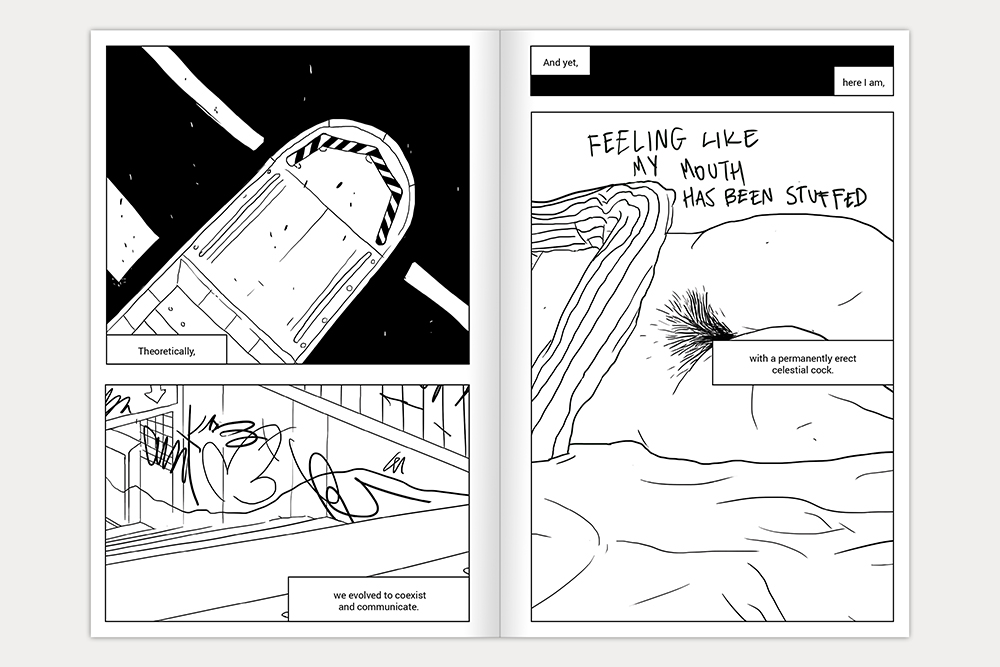 It adds a certain freedom in the sense of being involved in the project from its earliest stages. On the other hand, it’s probably rarely giving the freedom of printing something outrageous. However, finding a printing company that’ll be able to produce [the book], and for a good price, you feel like you’ve hacked your way through. For me, it’s always so charming to see something on paper. There’s still a lot of magic when you’re working on a project for a long time. You know everything by heart, and then it lands up in a book: a physical object.