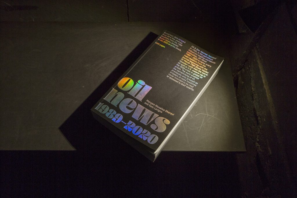 In Italo Calvino’s The Petrol Pump, a man thinks about the oil he’s filling up his car on a country roadside. He writes, “there’s a deep silence, as if all engines everywhere had ceased their firing and the wheeling life of the human race had stopped. The day the earth’s crust reabsorbs cities…until in millions of years’ time it thickens into oily deposits…” Although it seems benign— almost trivial— Calvino uses this experience to call attention to the totality of oil extraction. It illustrates the temporal and ubiquitous quality of oil and its trade industry, the focus of Maryam Monalisa Gharavi and Sam Lavigne‘s ‘OBIT’and ‘Oil News 1989-2020’ for Sonic Acts 2022 Biennial exhibition, one sun after another.