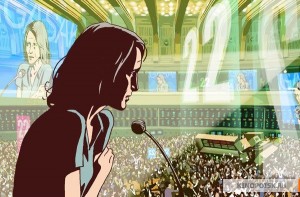 The Congress is based on Stanislaw Lem’s “The Futurological Congress,” a 1971 black humour science fiction novel about the exploits of one of his recurrent book characters, Ijon Tichy, as he visits the Eighth World Futurological Congress at the Costa Rica Hilton.