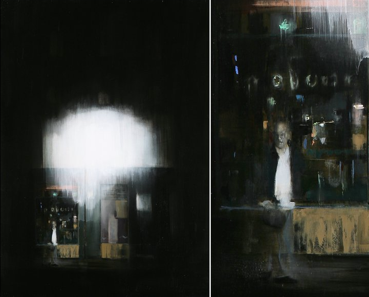 The California-based artist brings to the Jonathan Levine Gallery his latest oils expanding on his ongoing series of works entitled “Waiting”… studies of urban life through fragmented cityscapes and anonymous, isolated figures.