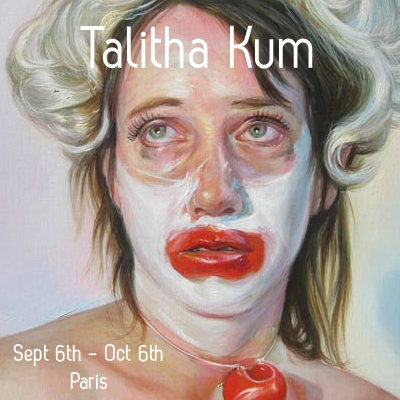 The exhibition is like a journey into a thought that is gradually embodied, and from painting to painting, you have to follow the restrained strength of the staged gestures: from the strangeness of a bandaged hand with a forming drop of blood, to the simplicity of a modest hand gently concealing genitals left in the shadow, a choreography of smoothness is implemented. The painter takes up the themes of the female clown, and echoes a former painting (Love Stronger than Death, 2010); but here the red nose has fallen off, and the face covered in white is raised, open, turned towards something other than itself, and standing on something that is beyond melancholy. Standing close by, the body of the woman is still there, naked, and in a position of eternal waiting. The vertical canvas soars up towards a peak that could be a sky. The painting’s only backdrop is a big creased drape, and its bareness, that is also fullness, moves deeply.