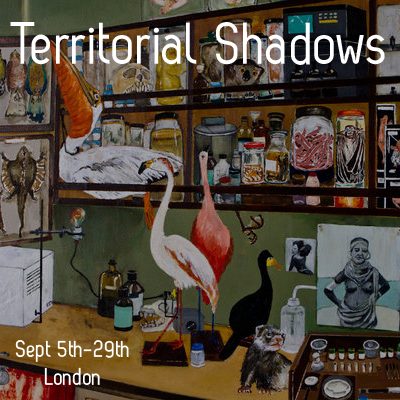 In Territorial Shadows the viewer is presented with a series of highly detailed and rich scenes, each a different chapter in her story. Hewitt creates an uncanny narrative in a Hunterian-esque museum with anatomical, pathological and zoological specimens obsessively detailed and ordered; pickled body parts and taxidermy animals and birds, butterflies pinned in rows and a plethora of categorised, archived, dissected and anatomised species, some disturbingly human, line the walls.