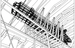 Returning on a quieter day, the black walled exhibition is barely populated and the impression is more ominous. Screens project out onto darkness, austere and quixotic objects are illuminated with a quality of sacredness. Zach Blas‘ ‘Face Cages’ (2013-2015) rest on two pedestals with their prisoners looking out from video screens behind them. Art is Open Source’s ‘Stakhanov’ is positioned under flags bearing religious symbols. This so-called ‘BigData God’ prints predictions that pile in an unread ribbon of paper on the floor. In the back of the space, Timo Arnall’s hefty documentation ‘Internet Machine’ (2014) quietly pans along the cloaked and impenetrable physicality of the internet. An overall “the-future-is-now” affect of the exhibition itself is felt alongside the actual works – something that transmediale projects in general.