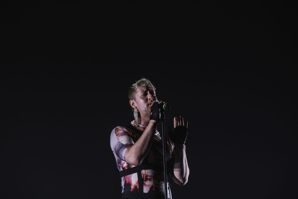 Elements of disruption and chaos are intentionally programmed, too – percussionist Adam Gołebiewski launches into his powerful solo drum set smack in the middle of a club night crowd, moments after the previous act has left the stage. At other times, artists themselves take the initiative. Gaika ensures that the audience is part of his bombastic, industrial-drenched dancehall storytelling. He tells the lighting engineer to bring the room to total darkness before asking his audience to turn their phone flashlights on. While such a request is often saved for more still, sentimental gig moments, here the vibrancy and sway of the dancers and their torches conjures a more spirited, ritualised unity.