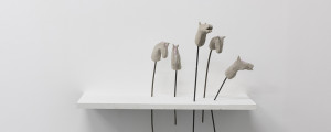 What seems to be the most personal piece in the show, ‘Cavalry’, is a group of horse heads made of clay and sugar. The horse, a symbol of power, is made in the most organic material. The herd has lost one of its members to a higher position on top of the gallery’s wall. Their escape reveals a history of wealth, domination and detachment. The rest of Darling’s steeds almost seem like a field of flowers, a crowd of individuals waiting to be picked.