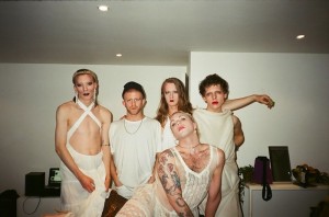 Instead, Nef’s one of what fellow member and ringleader Alexis Penney calls a troupe of “super futuristic androgynous performers” known as Chez Deep. Born from a misreading of friend and Penney collaborator Jamie Crewe (aka Poisonous Relationship’s) old twitter handle @twobitchesdeep, the group spans ages, backgrounds and star signs, including Olympia-educated performer of a punk pedigree Colin Self, Californian dancer Sam Banks and transwoman Bailey Stiles from a small town on the Bible belt. They each have their own personalities and influences; with an individual style constructed from thrift store finds and high-end fashion given life and expressed through their performances.