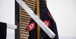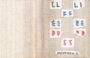 On the third wall rests ‘The Official Squad Medal Collection 2015 (Collector’s edition) #1 – #24’, holding what could on first glance, tidy rows of white painted pills. They are melted down pieces of aluminium, hand-made medals, each dabbed and made individual with Tipp-Ex. They echo sweetly and are the inverse of the four originally uniform vinyl prints, scratched down to become up. **