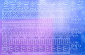 Deriving the leitmotifs from the craftworks of his diverse influences, Nassar creates the patterns digitally by masking and layering in programs like Adobe Illustrator, then meticulously hand-stitches and screen-prints the designs using heat and light-sensitive inks that allow the images to drift between colours.
