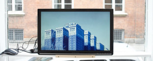 Ester Fleckner‘s ‘I Navigate in Collisions’(2015) are two woodcut prints on paper that are nervous images all bearing their forms (or trying to) out of straight lines, like family trees, as Fleckner’s collisionswebpage describes. London-based Perretta has created a surface that holds white washed marks up to bare scrutiny and that drapes, quite transparently and brightly, like a thing in the way in the space. It’s just behind Seibert’s video of landscapes, high sky scrapers, mountains, which sits in the window, looking out and titled: ‘I Am At A Loss For Words’ (2013). A small text also by Perretta is powerful and straight forward: “She knows about villages, the Modern and the savage, but I can’t listen anymore, because slowly she is taking my history away from me”.