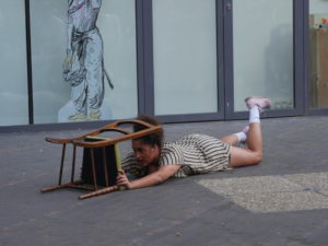 Jesse Darling’s precariously advancing school chairs, March of the Valedictorians, at Arcadia Missa are wobbly in a tough, formidable way, like a pack of small animals baring their teeth, and feel like a reminder of the constant activation of the border in the institution. They shudder a little on their long legs as people pass. Magician Space from Beijing lives up to its name, with shadows and wrought iron outdoor chairs by Liu Chuang, cloth moving lightly from a fan. Even the simplest diversion from the uniform strip-lighting of the Frieze tent provides welcome respite. I’m also caught in the beam of the shifting, flickering star in Rodeo’s booth, flicking over a church noticeboard by Duncan Campbell with a poem pinned inside. The woman in the booth describes it as a vitrine and her use of the word annoys me; this has a grimy, forlorn quality, quite removed from the pristine glass cases throughout the rest of the fair.**