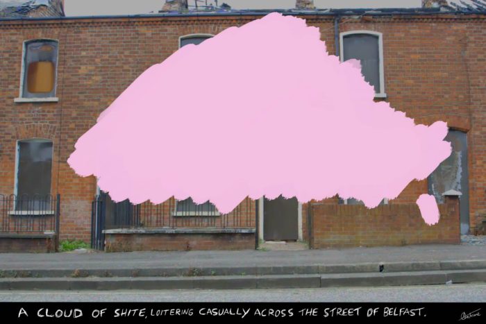 The works brought together explore language and words to unpick “the legacies of imperial scientific fundamentalism” and the violence of naming (and therefore claiming) bodies. Through its power, symbolism and obscurity, the exhibition looks at “propagandist deployment of slogans” and words within digital capitalism and legibility as a form of control as well as its place within divinity; “the unsayable equates to the sublime.”**