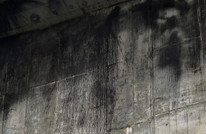 In Bridge, the Athenian art collective (founded by architect Pegy Zali and artists Petros Moris and Theodoros Giannakis) takes a peripheral event as its source of inspiration, re-imagining a critical narrative on the modern movements of matter, people, and energy. Built as a reference to a new railway transport bridge in the suburbs of Athens that was mysteriously sabotaged, the exhibition takes the form of “millions of microscopic fragments of phosphor-coated lamb glass, deformed metal and wood chips are still lying within the tunnel, mixed with the gray crushed stone of the railway”.
