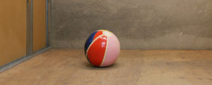 Mahmoud’s most formally recognizable and least abstract piece is a colorful, to-scale beach ball. Without a list of titles or materials to refer to, I’m left to observe exactly what’s in front of me. Its glossy finish and stillness leads me to believe it is made of ceramic —making it a replica of a delicate, light object made of a different, yet equally fragile material. Diagonally across from the ball is a free-standing fibre-glass piece of what I can only guess was once a jacuzzi or bath. Smooth and white like the faux-porcelain of any domestic tub on one side, and rough and painted a bright, chalky, Pepto-Bismol pink on the reverse.