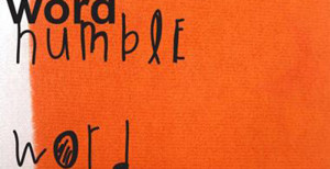 The show is called Men what a humble word and is accompanied by an orange and white flyer with the title in simple black font. An echo of the title is written by hand underneath each word, font and hand-written responding to each other. The “L” of the handwritten “humble” kind of looks like someone standing up crossing their legs.