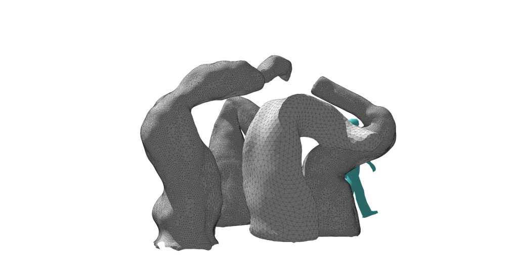 These new works, constructed to a similar size of automated machines in factories, will be made with a metal understructure resembling what they call “both an industrial robotic arm and anthropomorphic limbs or parts.” A range of specifically produced skins will be stretched over them, made using disposable cellophane, soft textiles or expensive hard duty, heat-resistant materials reflecting the diversity of the machines in an industrial setting. These outer layers mirror the protective clothing of workers, connecting the human and the synthetic in a similar environment. These covered ‘bodies’ will then become an uncanny mixture of cyborg-like features and gestures, “creating an assembly of yet unknown or transitory species.” The resultant work takes on a striking and individual form that bridges potentially alienating emerging technologies with the reassurance of the everyday.
