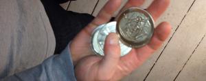 The objects to be displayed, though largely unassuming, took on a fetishistic character in the context of their documentation. Martin Kohout’s ‘Sticks: Class A’(2011) looked like a cross between a wind instrument, a weapon and a ritualistic divining rod. The ‘Based on Memory’(2012)Euro coins by Anne de Vries were exhibited enticingly in the palm of their bearer’s cupped hands, like a semi-religious offering. All the while, Hanne Lippard’s familiar voice filled the room, as her audio narrative ‘Dings (Horrorscope 2014)’ (2013) –a series of prophetic reflections on suffocating office atmospheres mixed with astrological truisms –emanated reassuringly from a laptop on a table. It was played on V4ULT’s website (where it can still be seen), the background pattern of Naja Ankarfeldt’s accompanying video, ‘Things’ (2013), meshing seamlessly with the wallpaper itself, giving rise to the V4ULT tag line that “the URL continues IRL”. The site becoming personified –in lieu of the artists themselves –as participant among the performers in the room.