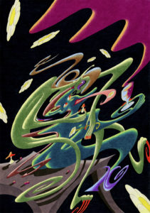 The media of the show is diverse, ranging from classical modes like painting and sculpture, to experimental video and animation, and using the tropes of science fiction including dystopia, cosmology, and fantasy to restructure narratives and create alternate realities.