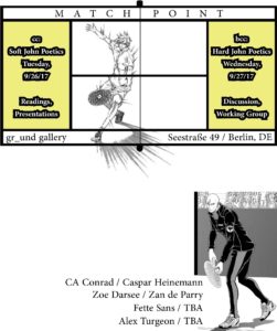 The Soft John Poetics and Hard John Poetics dual–event at Berlin’s gr_und is taking place on September 26 and 27.