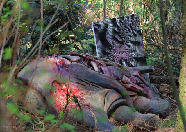 If you wait for something long enough it’ll come back in style, and dinosaurs are coming back with a vengeance of all things though extinct. Jurassic Paint, the second online show by New Scenario, went live on their website in early June. The group exhibition, shot in the forest of Saurierpark Kleinwelka, a dinosaur park filled with life-size dinosaur models, combines “two prehistoric yet resilient species” for a collection of canvas works from eleven visual artists.