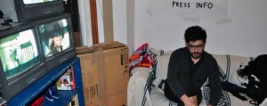 Downstairs, Lead Pipe, a “metal band” featuring a shirtless Arcadia Missa co-curator Tom Clark on drums, as well as artists Charlie Woolley, Harry Burke and Paul Kneale, play among Leslie Kulesh’s artforum chain decorations, while a hand written poster on DJ Imran Perretta, aka Madboy Zimba’s deck (singular) announces studio visits around his corner of the lounge room (#fuckfrieze). There’s also the promised stack of “good” video art –the “bad” being screened in the perpetually rammed kitchen that I don’t dare enter –called The basis of all structures is the placing, very carefully, of two bricks (Faust was right, have no regrets) curated by Takeshi Shiomitsu. I’m not sure how ‘good’ The Armando Iannucci Shows episode called ‘Twats’ is in itself but the (homo)eroticised initiation of a young protégé into the business world by puffing on his first official phallus in Annika Larsson’s ‘Cigar’ suggests the commentary’s in the context.