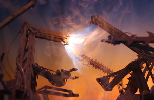 Inspired by DIY cultures and what is described as “the changing landscape of labour”, du Preez’s installation imagines a future where humans may need to domesticate and control their now fully autonomous artificial creations.