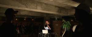 Ariel 2.0 is a project running throughout the summer at Bold Tendencies, an auditorium space occupying the seventh floor of a multi-storey car park off Rye Lane in Peckham, South East London. Curated by Berlin-born, London-based artist/rapper Leo Liccini (aka Leo Luchini), the series features a number of international artists taking part in a programme of sampled speech, spoken word, and rap, embracing the performative voice and examining how it is altered by computers and online life. To that end they’ve already hosted a show with Cakes da Killa, with a performance from Felicita planned for the future. While Bold Tendencies occupies the entire car park, the performances themselves take place in a smaller space – a hut built out of hay bales – located deeper in the venue, beyond an installation from Amsterdam design collective Metahaven. Karen Gwyer headlined Ariel 2.0’s second edition, with support on the night coming from Nkisi.