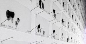 An ongoing project by Ari Versluis and Ellie Uyttenbroek exposes the invisible people of Paris with ‘Exactitudes’ (1994-), an ongoing project which collates photos of individuals from across social strata and presenting similarities in appearance and character. In this case it’s a series on the macho; men dressed in hoodies of varying shades of black to white -perhaps a reference to the recent Trayvon Martin shooting in Florida -with the implication being that everyone could find their ‘type’ in these images. That need to find one self is literally reflected in Mirko Lazovic‘s mirror-based work, fulfilling that desire and then demolishing it as the viewer bends over his sculptural work ‘Narciss’(2013). Here, they can see themselves but disfigured, becoming as invisible as the rest of the creatures of the Faceless II space. **