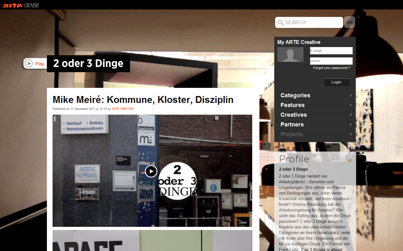So the big cultural European giant network ARTE (mostly only well-known in France & Germany) have decided to create their very own personal / artist profile site-building open to all sorts of art-related individuals or collectives.