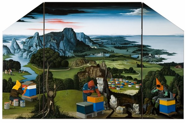 John Stark is back to London’s Charlie Smith gallery with his second solo exhibition…. Beekeeping, a surrealistic Dalinian approach to honey bee maintenance.