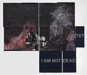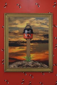 The mixed media frames also included in Nobody Knows I’m Funny bring together the same kinds of pornographic images and depraved alt-right rhetoric, included in the publication, and, in a sense, they are also a frame for the show as a whole: a flattening of the experience of hatred, rejection, fear and nihilism in a literal sense. This flattening, however, is also a metaphor; the mediation of screens, of anonymous handles, and — as some of the comments quoted in the publication suggest — various forms of intoxication and numbing, neutralise violence, its fetishisation and its infinite reproducibility.**