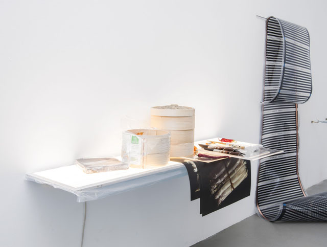 David Jablonowski, ‘Still Life with Asparagus, Dim Sum Voucher II, 2014’ (2014). To Satisfy Algorithms : Still Life with Asparagus install view. Image courtesy Lüttgenmeijer.