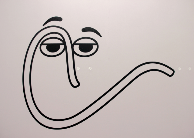 In the work, the infamous Microsoft Office assistant, ‘Clippy the Paperclip’ is placed behind the glass window. Four variations sit next to each other in a horizontal row, interacting with passers-by through a passive-aggressive attempt to anthropomorphise human emotion. The artist’s interest in the cartoon character seems to stem from her research into human-computer relations and the emotional bond that consumers are offered to develop with these interfaces.
