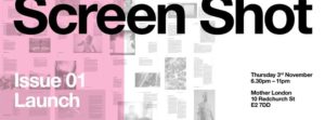 The Screen Shot Issue 01 launch is on at Mother London is taking place on November 3.
