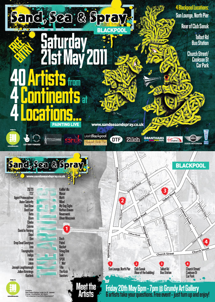 Born in Palo Alto, California, but has resided in Barcelona since he was a child. In the last few years he has participated in a variety of events and urban art shows in many different countries. As a good new referent in Europe ARYZ’s exhibition @ MontanaLisboa showed for the first time his process sketches for most of is projects, photos of the evening can be seen here.