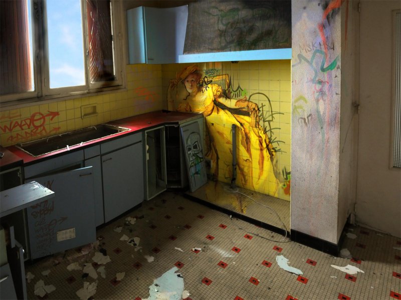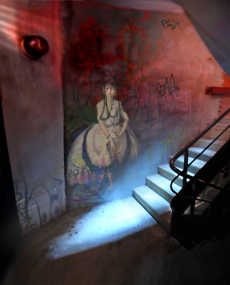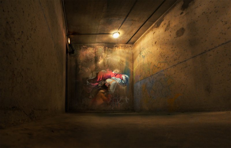 The shop (which is part and distributes the well-known graffiti brand Montana) had the support of the city council (GAU) that found the shop & artist a nice building side very visible right in the heart of Lisbon. Aryz then started working on Friday night the 2nd of December and ended it the 6th afternoon (btw the mural is along Avenida da Liberdade near the Tivoli theater between Rua Santa Marta and Rua Rodrigues Sampaio).