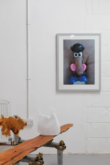 The work continues with the themes in his last show at London’s LARA, which explored the world of pranks and ‘abuse of power’ with physical material.