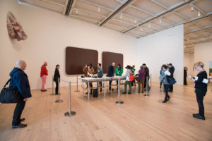 Visitors gathering in front of Jordan Wolfson’s VR ‘Real Violence; (2017). Courtesy the New Yorker.