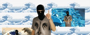 Wood would grow up to be a financial advisor, lose his job to financial collapse in 2008 and find a new calling in the Martial Arts. It might sound like a bizarre vocational digression but ‘Liquidity Inc.’ insists that it not only makes sense but it’s inevitable. In humanity’s networked and endless “fight to the bitter beginning” –as translated into English from the mouth of a little girl speaking German –a news report on Google Glass plays out as “a storm is blowing from hell; driving us back into the past”. The girl is wearing the same balaclava and t-shirt with an owl print, watching, as the adult representative of militant meteorologists Weather Undergrounddoes. He declares “your feelings are affecting the weather, and you are feeling not that great”. Those are the real-world effects of affective labour as illustrated via these weather forecasts and a tiled background of Ukiyo-e’s ‘The Great Wave’, mass-produced and flashing for popular consumption: “I am liquidity incorporated… the rainbow… torrent…cloud”.