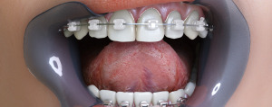 Like Humeau, who won the Berlin Art Week Jury Choice award for Horizons, Cooper’s two-storey exhibition won her this year’s acclaimed Schering Stiftung Art Award. Standing in front of a large screen on to which RIGGED’s only video work is projected, I can understand why, even if I don’t much enjoy what I’m looking at. A woman’s body, slipping in and out of HD realism, is seen from various angles, performing various tasks. She runs. She lies. She stares at the camera with dead eyes enhanced to flicker. In photographic works displayed on the higher connecting floor, she is seen exposing her teeth, around which silver braces and a grey plastic mouthguard are fastened. Despite the visible discomfort, her mouth rests in a soft smile.