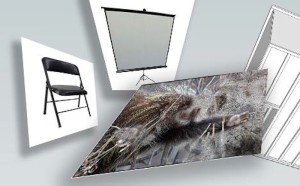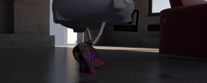 It’s unclear if it’s at the beginning or near the end when a 3D computer generated dinosaur appears. As it moves within the frame it becomes apparent that the shapes on the carpet are in fact the predator’s skin, flattened out. “It’s just a script you have to follow”, says a voiceover and you wonder if this extinct animal is in fact the narrator.