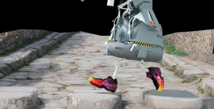 The focus, then, is more on the objects in Schmoetzer’s piece, as well as the corporate sponsorship that made Baumgartner’s trip possible. After all, it appears, the product image is more stable than the human behind it. Plastered in Red Bull energy drink logos, the capsule that carried Baumgartner to a world record, travels through the troposphere. Found footage of a boy appears as he shows the interior and exterior of a colourful Nike shoe. Later, the personalised capsule is situated in a modern apartment, anthropomorphised and walking around in these same Nike shoes. Outside we recognise the galaxy.
