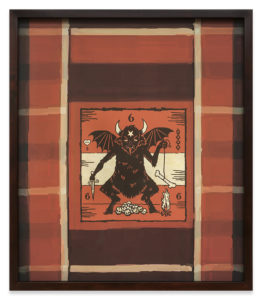 Under dimmed lights near double glass doors, Camilla Steinum’s lookalike tablecloth, ‘I’ve stopped eating stuff from the floor’(2016), is caressed by hand —an unconscious outline of a butt —before the eyes adjust to reveal this visual and textural pleasure for the first time. There, her hand-dyed, hand-stitched carpet is lifted from the floor to chair-height, a plush surface to start conversation as smoothly as the beer bottles, ashtrays, cigarette lighters and mobile phones left on the artwork’s surface.