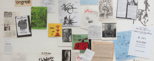 Schizo-Culture: Cracks in the Street at [ space ] takes mid-70s event as a starting point for a small but indulgent exhibition that skillfully weaves both a rare collection of archival material related to the original conference with related artworks and commissions by contemporary artists. The event is used as a springboard to reflect on affiliated movements such as no-wave and the anti-capitalist attitudinal relationships that existed in the late 1970s in Manhattan and Paris: a DIY creative culture still mostly uncontaminated by the present day co-terminus relationship between art and its marketability. It’s a space set up like a workshop with pencils and factsheets outlining the agenda and backgrounds of panelists from the original event. Although no video footage can be found from the symposium itself, there is audio recorded from Lyotard’s speech played from a nearby stairwell, as well as well as footage from Deleuze’s courses at Vincennes in Paris where he taught for the majority of his career, and an interview conducted by Dutch philosopher Fons Elders with Foucault in 1971.